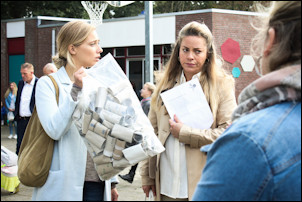 Nora vraagt heel diplomatiek: "Leo had het een bak erachter?" "Leo: kiepwagen. Ja een bak." Adrian: "ja, het was een bakker".