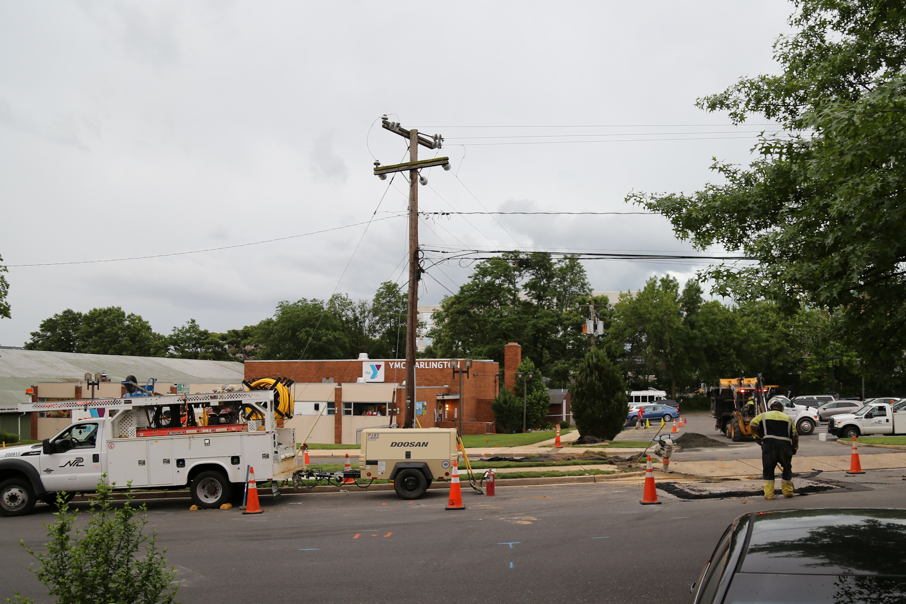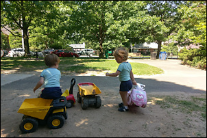 The YMCA is getting a new gas line, so for the last few days there have been a few diggers and trucks at the street behind our house, much to the delight of the kids.