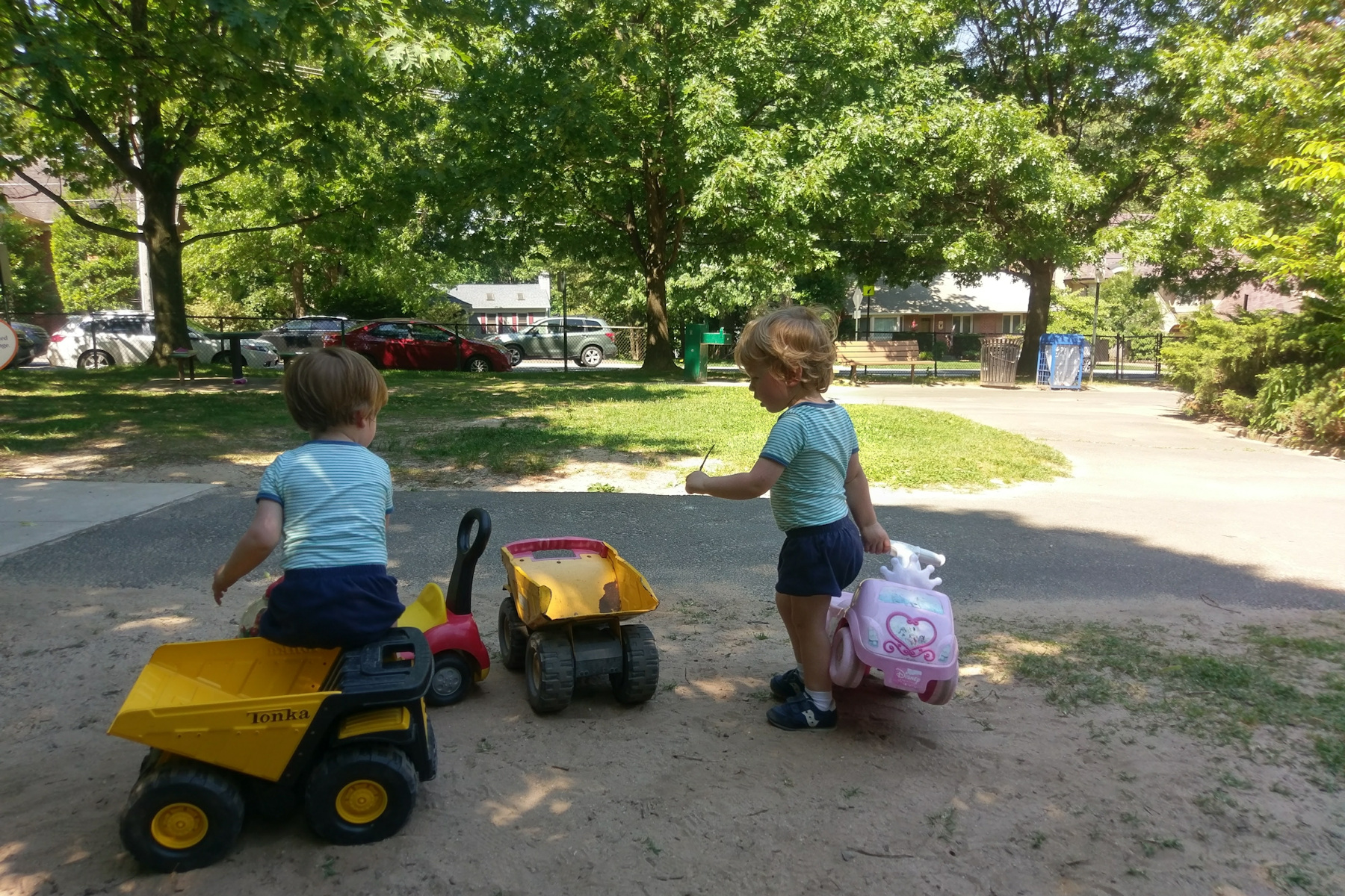 After breakfast, Adrian left the police car alone and Leo saw his chance and took it. So after the diaper change, when Adrian came back in the living room, his police car was in his brother's hands, much to his chagrin. Since Leo was playing with it, Adrian had to find something else to do, but he wasn't very happy. A few minutes later, Leo was done playing with it, and came to Adrian with a big smile: "Adrian pie-pie auto" and gave the car to Adrian.