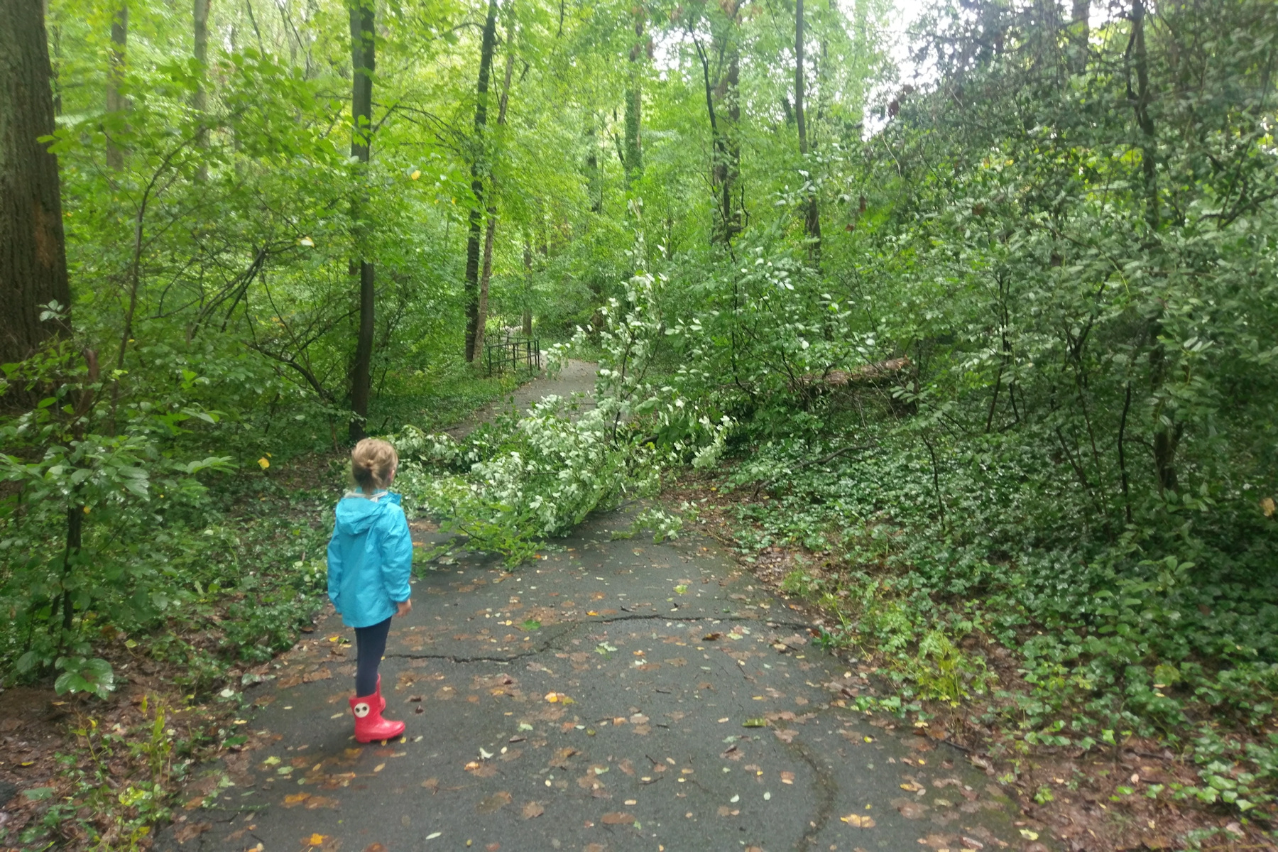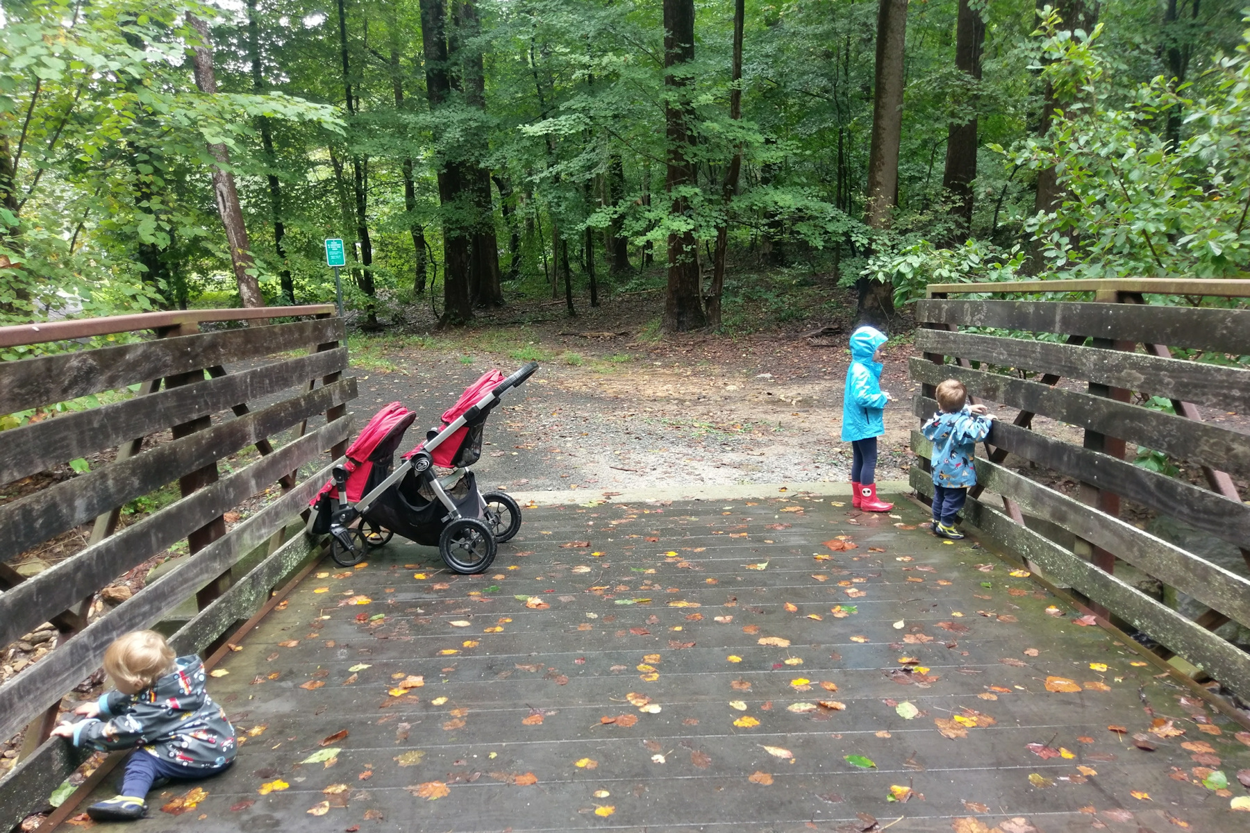 I took the kids out for a walk along Donaldson Run in the afternoon. It was beautiful out -- a grey sky but not cold and with a real fall atmosphere.
