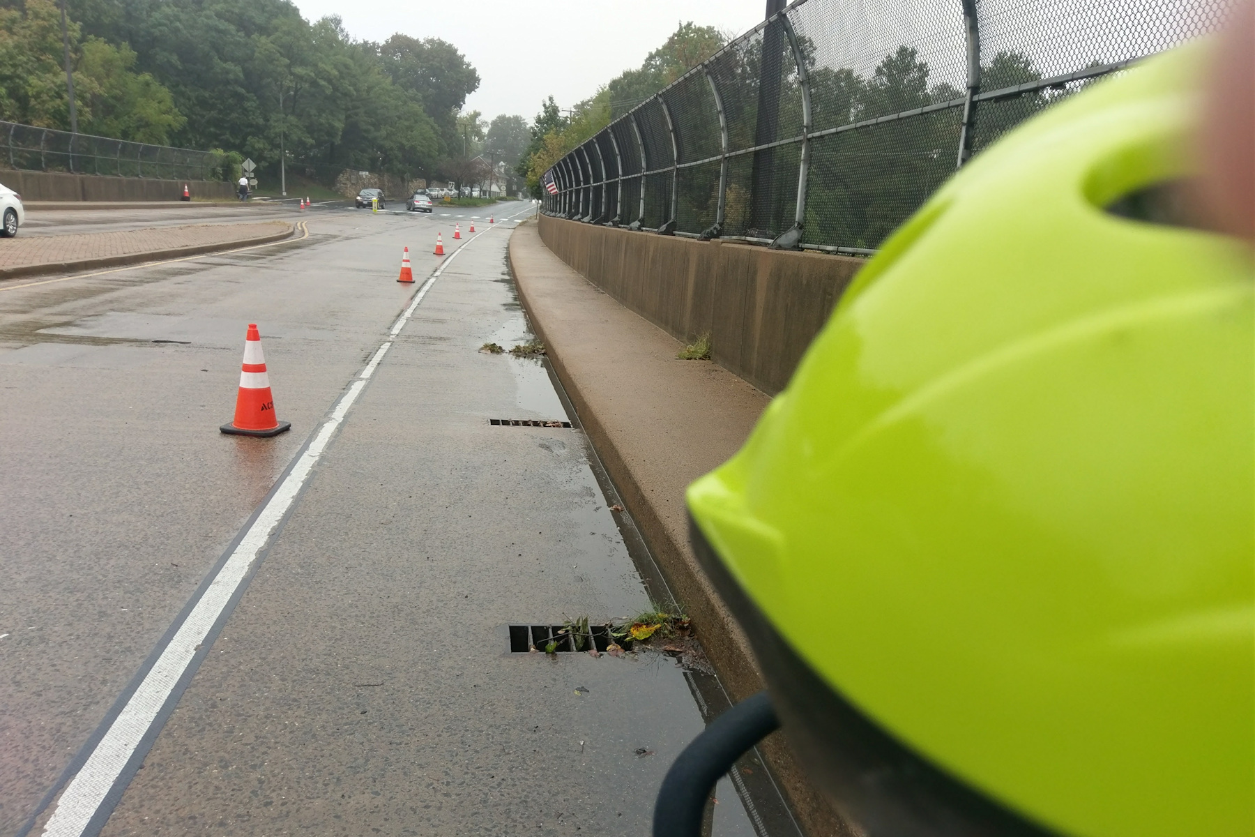 I took him on the bike in the morning -- he loves bicycling -- and we used the temporary protection on Quincy that was installed for a 'fun ride'. It took about 20 minutes to get there, 15 minutes on the way back.