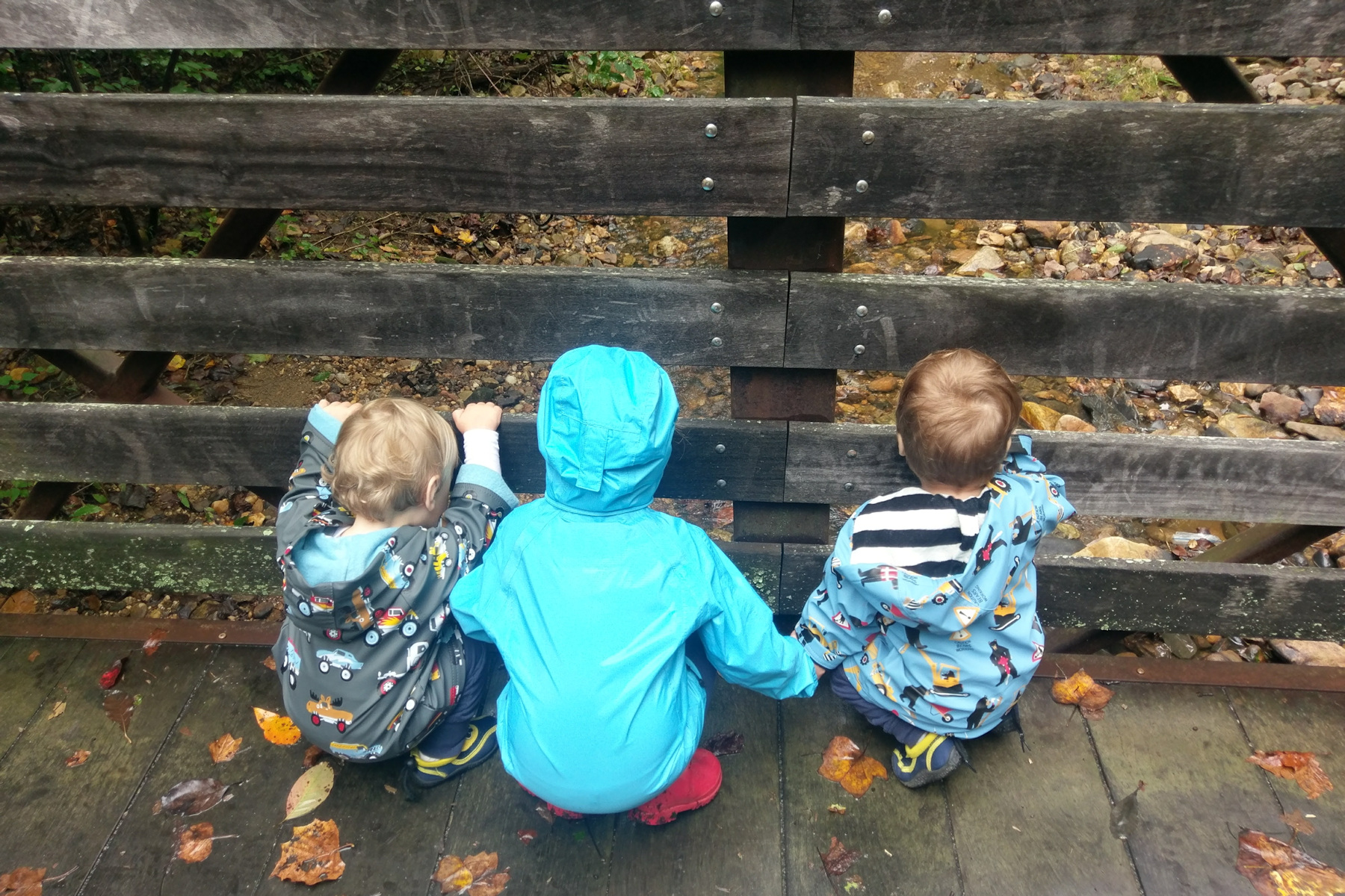 Halfway the walk I let the guys walk by themselves and Nora took Leo's hand to guide him, while sniffy Adrian stayed close to me. We watched the water flow, and the boys touched a few trees. Adrian pointed to the ground and said "bah", because of all the leaves.