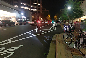 When the kids went to bed I bicycled to Rosslyn to check it out, and it felt great. Wilson is not a great street to bike on, with the two high speed lanes of traffic, and the protection made a huge difference. It also helps that it's less likely now to bump into opening car doors.