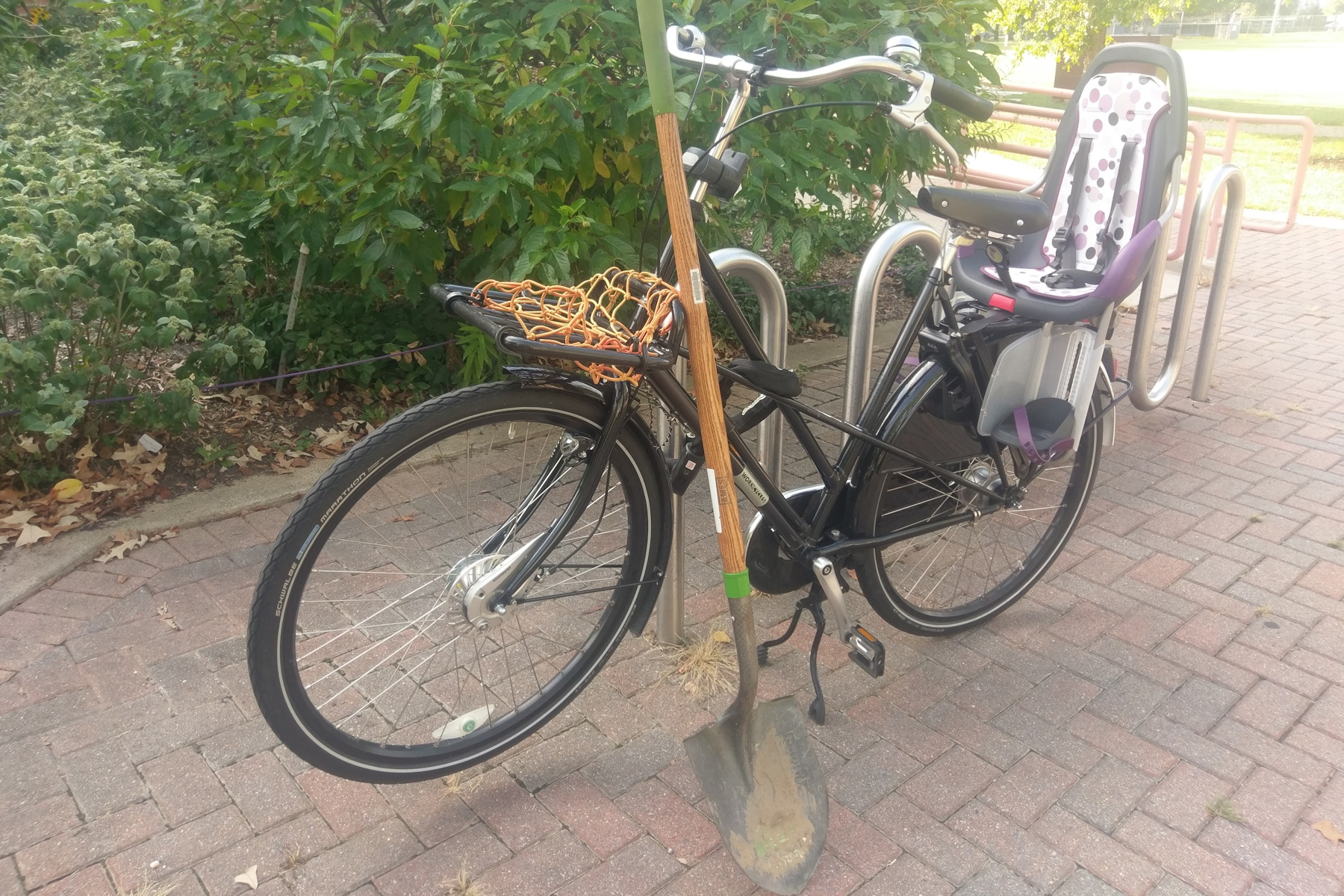 Tonight I brought a spade, I actually borrowed it from the library. We've been doing some yard work and now we hope to plant two small trees.