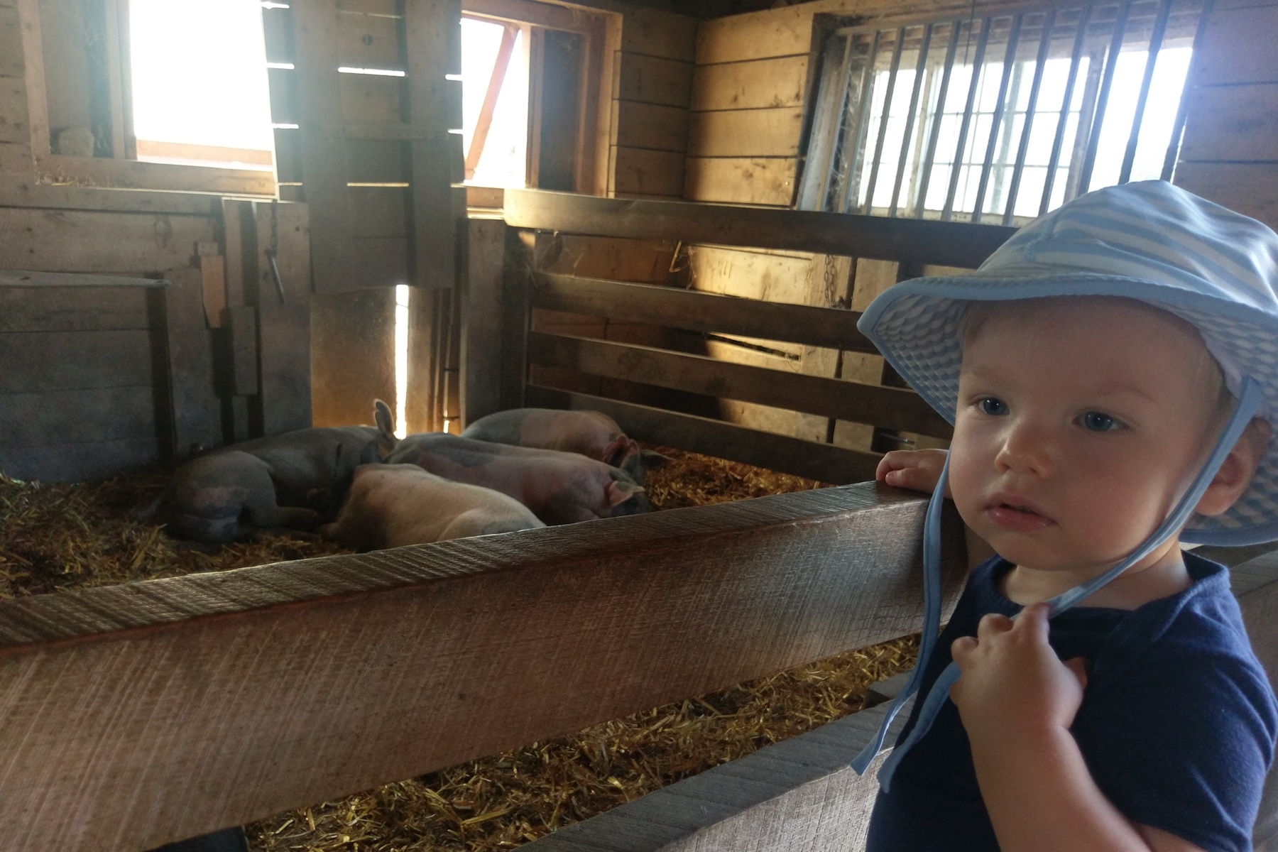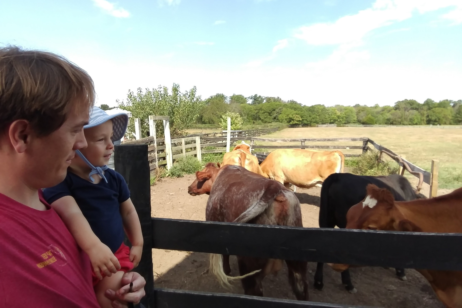 This was the first visit for Leo and Adrian, and the first time they saw cows and horses and ducks -- they loved it. Of all the things, the tractor made the biggest impression. Adrian in particular was mesmerized.