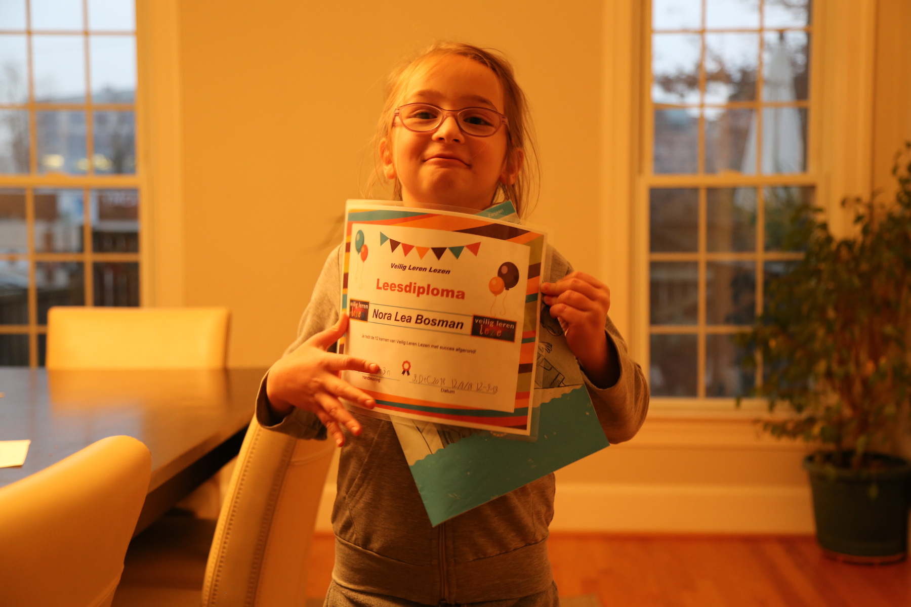 I'm extremely proud. We started in February 2017, and in those 22 months Nora has learned how to read chapter books in Dutch, how to spell basic words and she expanded her vocabulary greatly. I remember that I had to tell her what a put was.