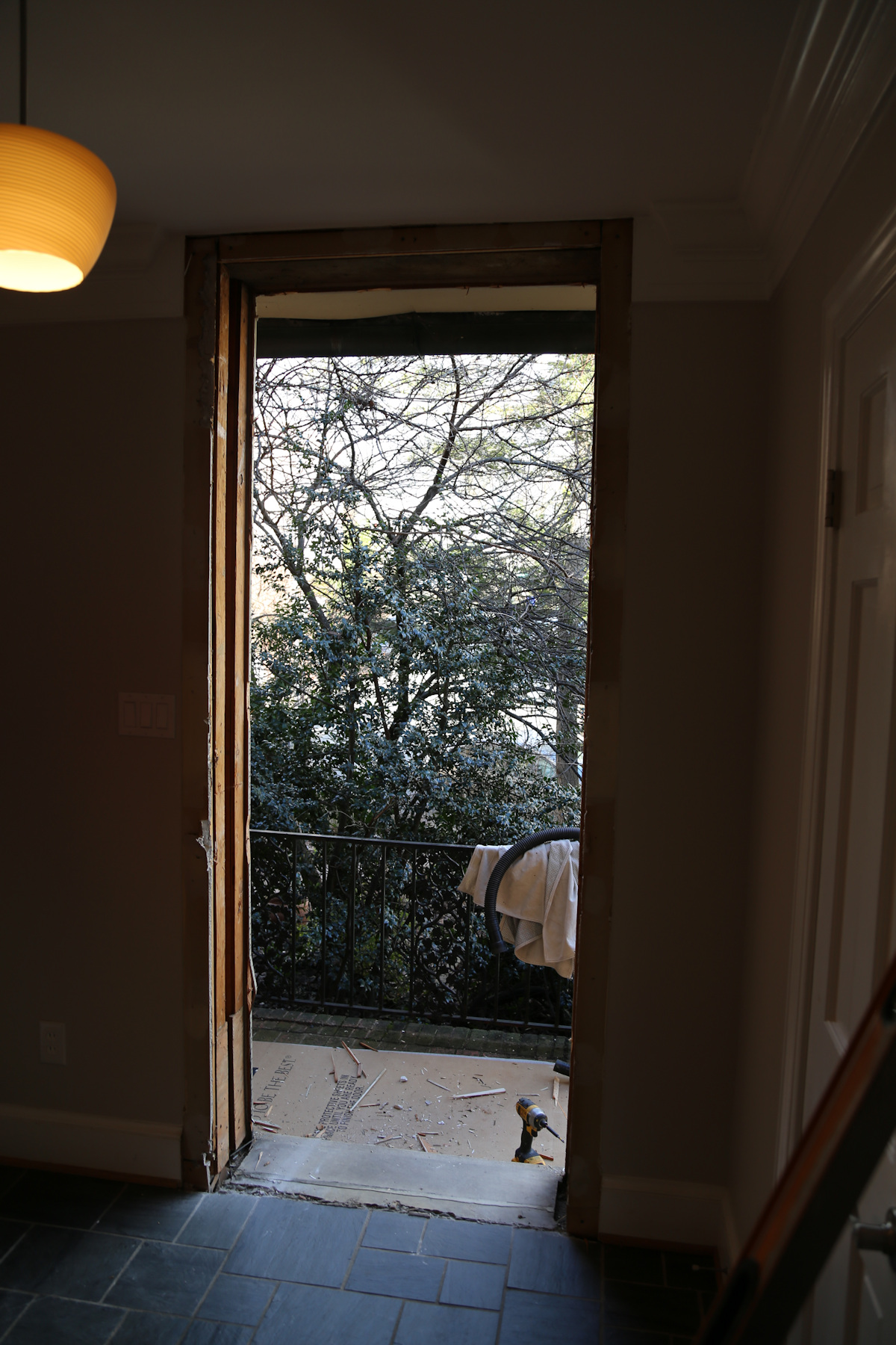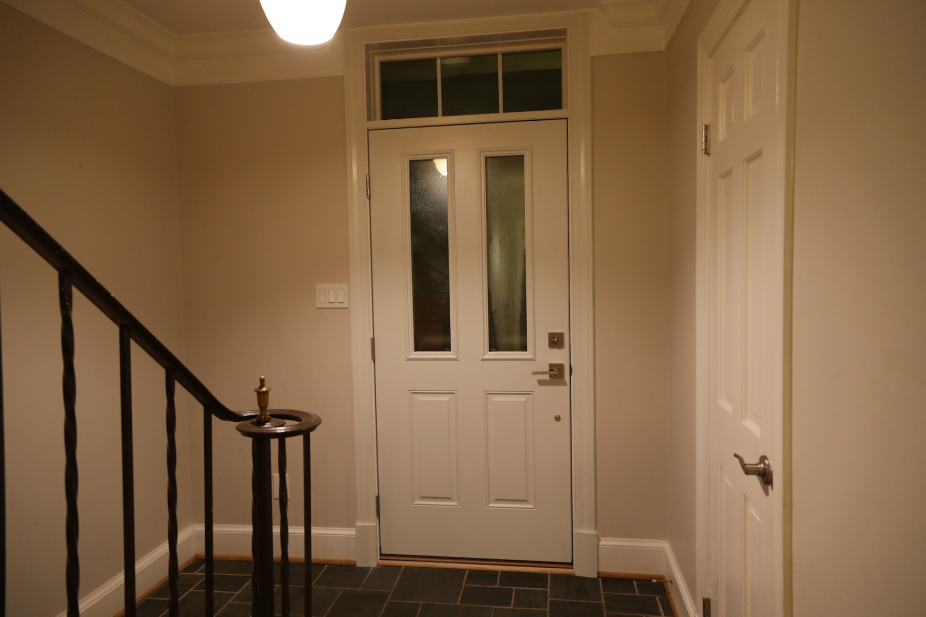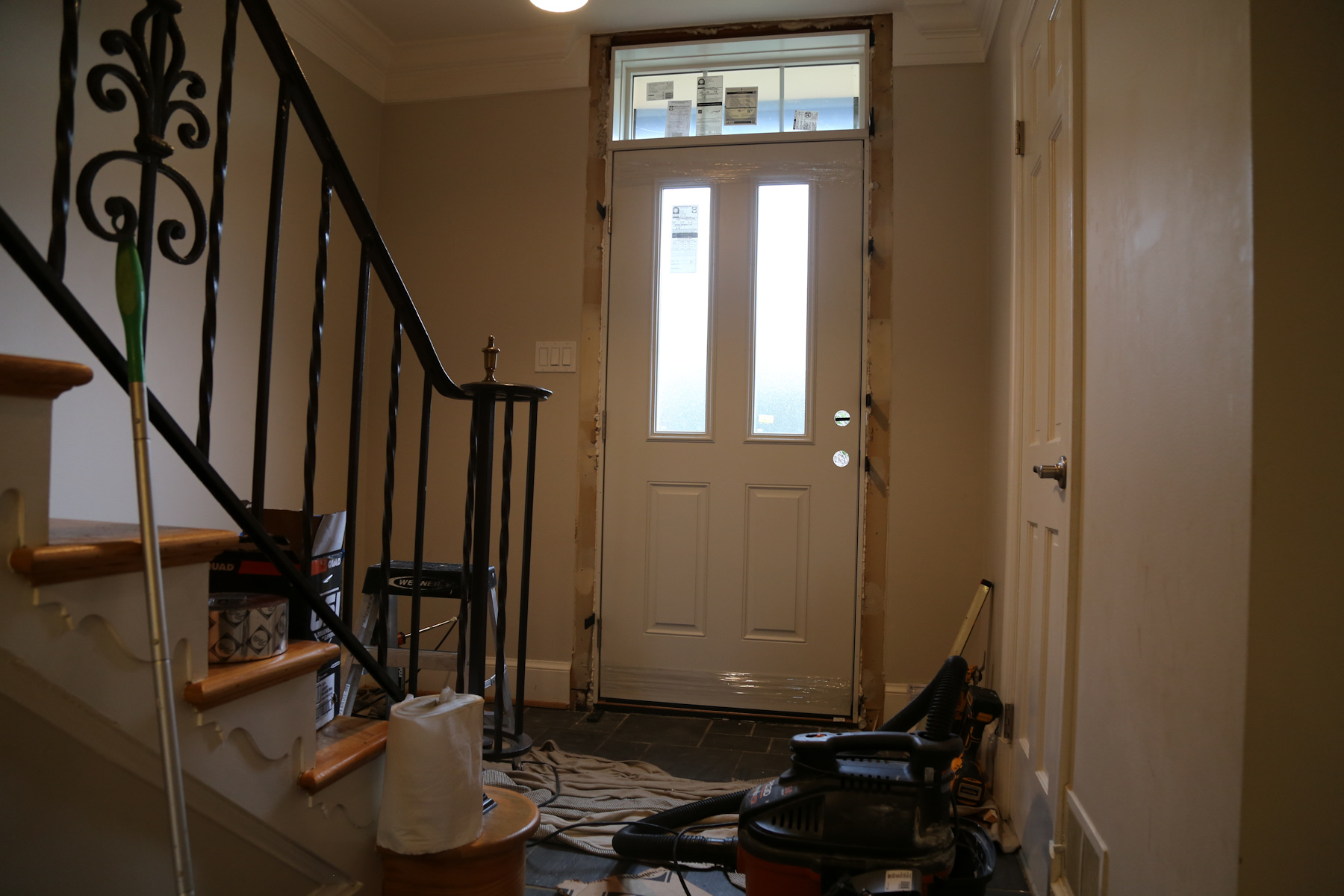 The door we had until today was the original 1967 one, and it was at the end of its useful live. Very drafty and it made the downstairs cold. Because our thermostat isn't too far from the door, it would make the rest of the house overly warm. The new door has glass windows, with privacy glass, which gives a little more light in our hallway. And no more noisy and cold mail slot.