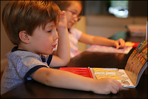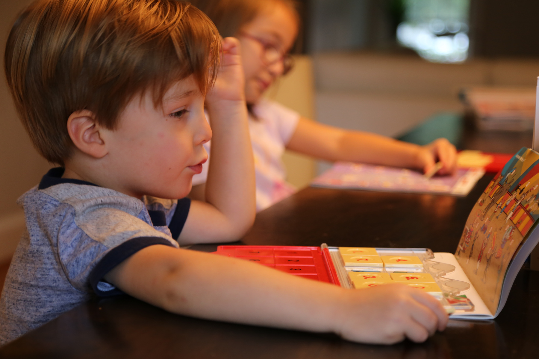 When it was time to put their boots on, Adrian said goodbye to his toys: "Dag, ik ga naar school, ik ga leren lezen".