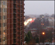 It's raining today, and everytime that happens there's a traffic jam on the road that we can see from far from our window.