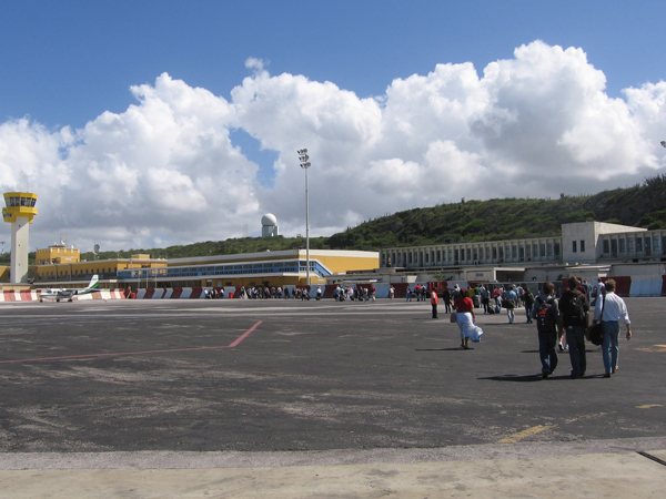 We walked from the plane to the terminal, where we filled in the customs papers. It was a nice surprise: the lady spoke to me in Dutch. It is a very small airport; the only people going through customs when we arrived where people from our plane. Immigrations wasn't very formal, we got a stamp in our passport and we could walk through.