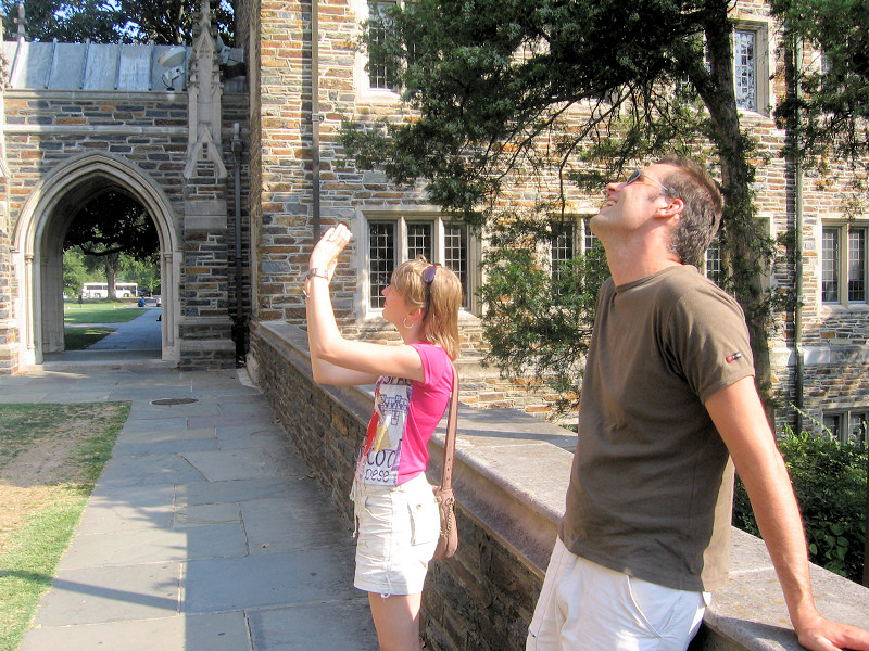 Taking pictures in Durham, NC.On Saturday morning Joost and Ankie arrived in Durham. They started their trip in New York a week ago, and traveled by car via Washington to North Carolina.