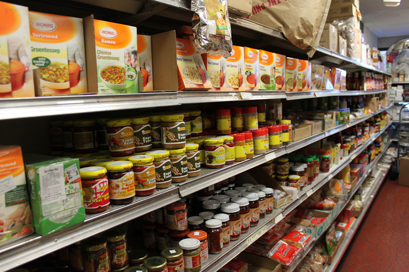 This store has groceries from all countries over the world and has a large "Holland" section. Also, you can get your Indonesian groceries such as Conimex products at their "Malasian" section.