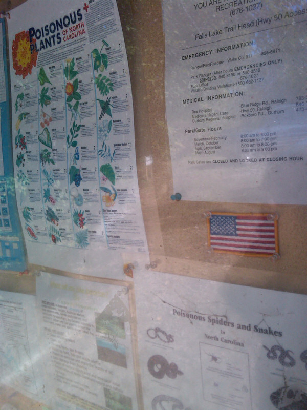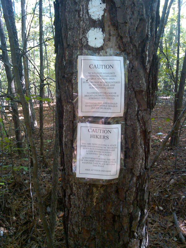 We had a good and productive weekend. Yesterday we went for a walk near Falls Lake, a little north of Durham. We had never been there before and it was beautiful, but we stopped early because of a sign that warned that we were now entering a hunting area. "Reflecting clothes are recommended." Hunting season has recently started. Until October 1st hunting was limited to the use of bow-and-arrow, now other weapons may be used as well.