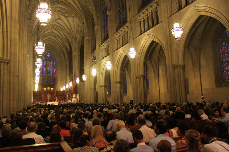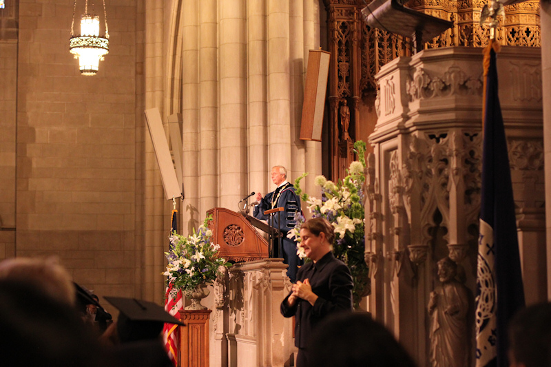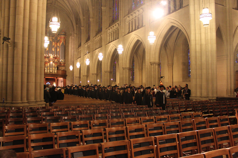 One of the highlights of Commencement Weekend is the Baccalaureate Service held in the majestic Duke Chapel. The ceremony features a procession of the degree candidates in academic attire. The service includes a sermon by the Dean of the Chapel, and the President’s Charge by Richard H. Brodhead.
