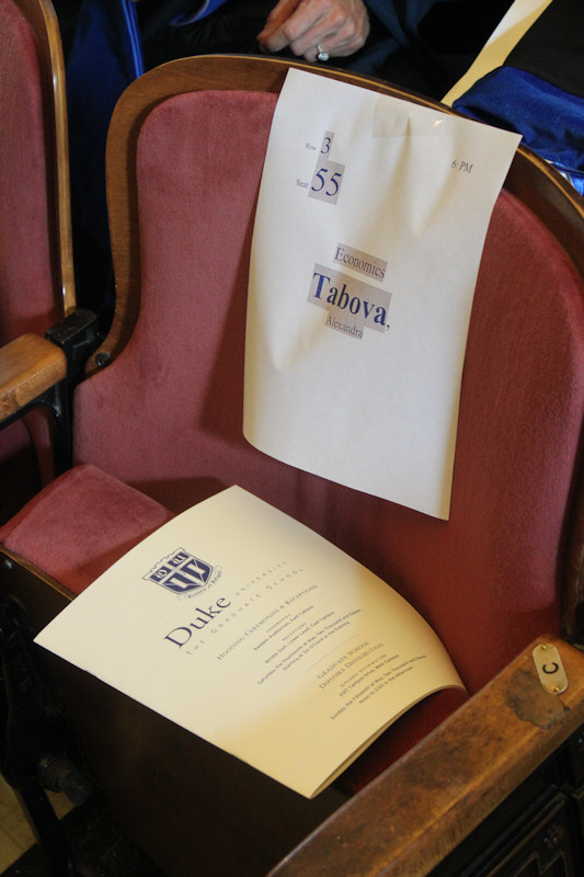 The weekend started with a Baccalaureate service at the Duke Chapel, followed by the PhD hooding ceremony. On Sunday was the diploma distribution of the Department of Economics.