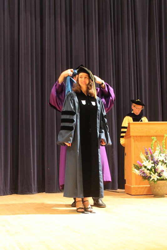 The Hooding Ceremony is a special recognition ceremony for doctoral degree candidates during which a faculty advisor and the Dean of the Graduate School place the doctoral hood over the head of the graduate, signifying his or her success in completing the graduate program. The ceremony is similar to a graduation in that faculty and students are dressed in academic attire.