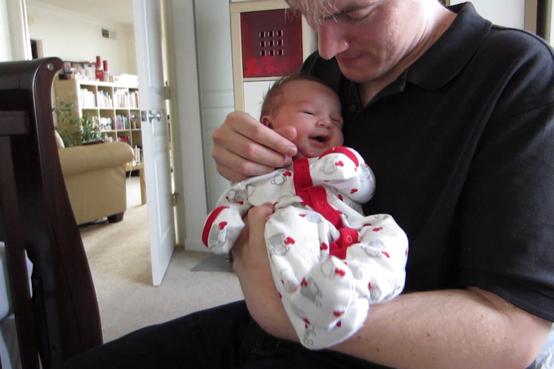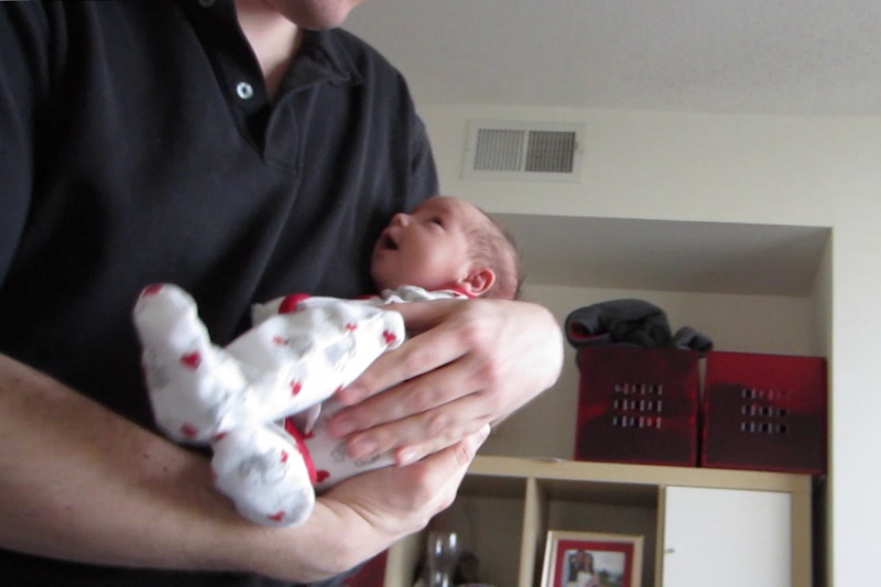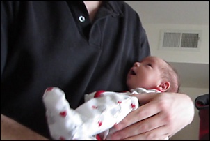 Monday morning we went to the pediatrician again for the two week check-up, and Nora has grown 3/4" (two centimeters) since she was born. She is awake for longer periods now, and she often has this "quiet alertness" state where she is looking at everything (especially at lights).