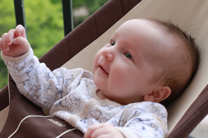 In the morning, after her feeding, we put her in her chair and ten minutes later she started crying. Diaper was clean, food had been provided and she had just slept, so I picked her up to see what was going on. The answer was clearly that she wanted company, because she started smiling and cooing to us. Slowly but surely she's turning into a person with real social behaviors.