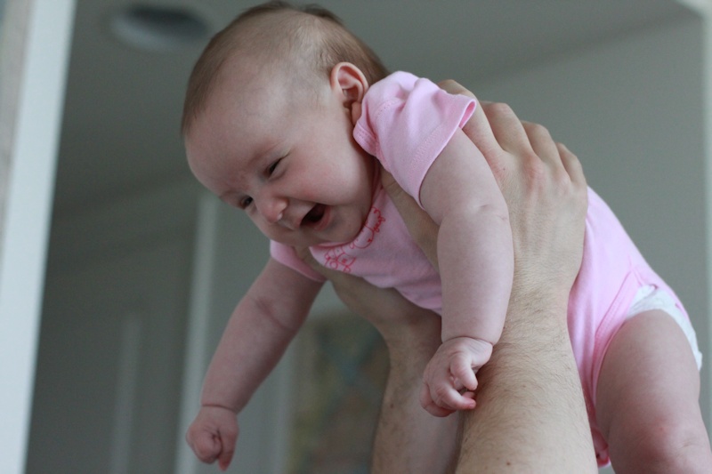 Nora starts to enjoy "flying in the air" and we're having a lot of fun together.