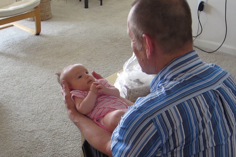 Nora was very interested in this new face and after a few minutes started smiling at her grandfather.