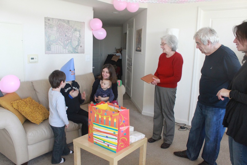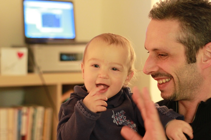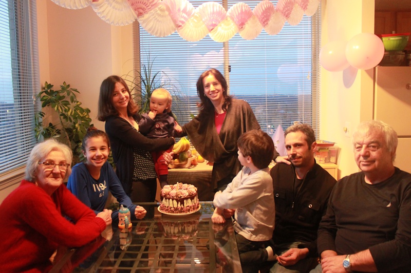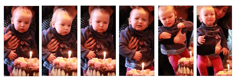 After lunch we cut the cake. Nora was getting tired so she got scared by the cake and the singing, but after a quick cuddle things were fine. Julian helped her blow the candle. In the afternoon she played with her cousins and she had a great day, and so did we.