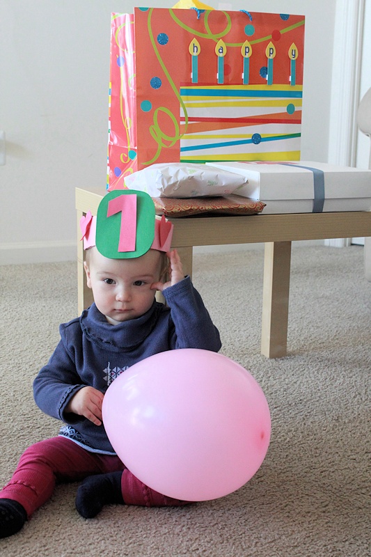 When Nora woke up the house was full with pink balloons and garlands. When she entered the room in mami's arms she pointed out each and single balloon. From an alphabet book she had learned the word balloon already, so she happily said "ba, ba" to every one of them.