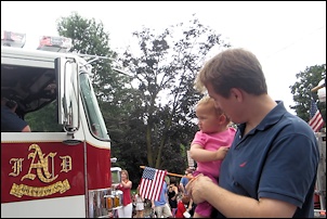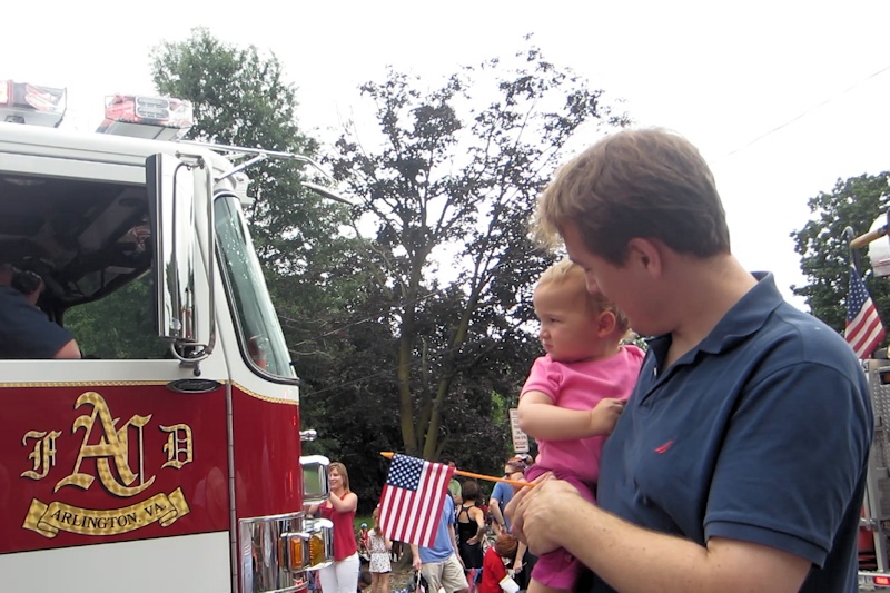 The parade is a short walk along Key Boulevard, and several classic cars participated as well as Uncle Sam. Nora was deeply impressed by the fire trucks that also took part. We've been reading about the "brandweer" for a while now and it was fun to see them in real life, if a little scary.