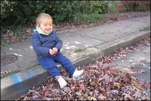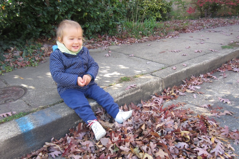 This morning we went for a walk to Washington-Lee, the high school near us. It's less than half a mile but we took our time since Nora was walking with us. Since a few weeks we let her walk longer distances, without the stroller, and she loves it. She stops and looks at everything: flowers, stones, carved pumpkins ("poes!").