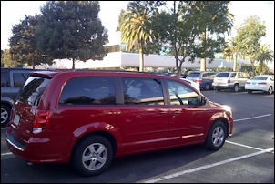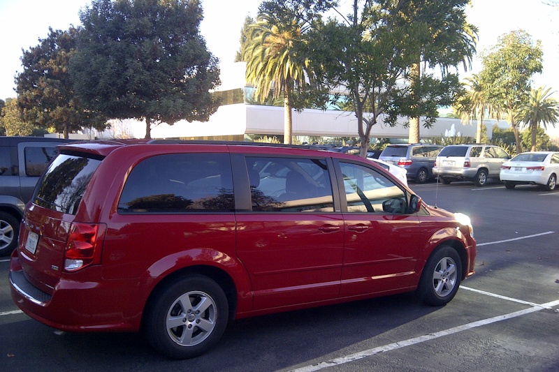 At the airport in San Francisco we rented a minivan -- it was that or waiting another 20 minutes -- so I drove one of those huge cars for the first time. But the noise was bothering us -- was it a bird? Some sort of small animal?