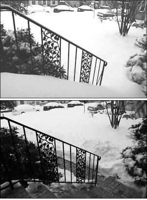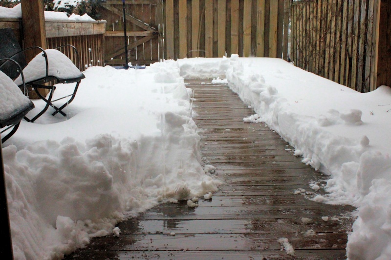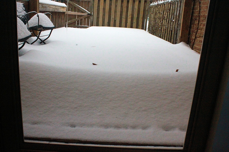 We had at least 8 inches of snow tonight. That's more than we've ever had in this house and shoveling was quite a workout.