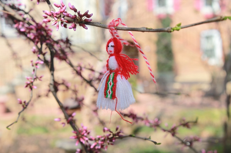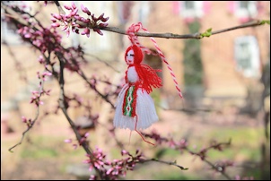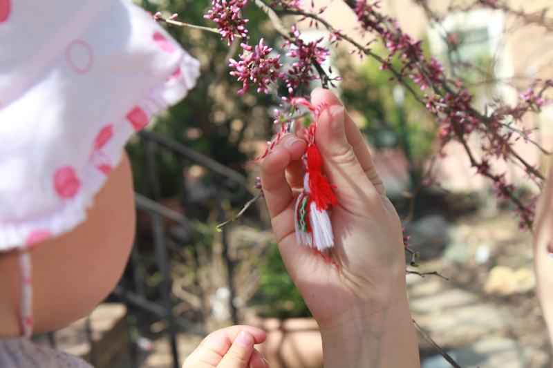 It's very definitely spring now and we hang Nora's martenitsa in a tree this morning. For the first time on a tree in our own yard.