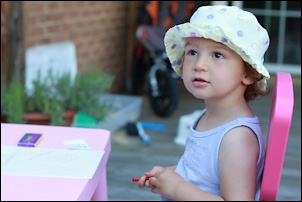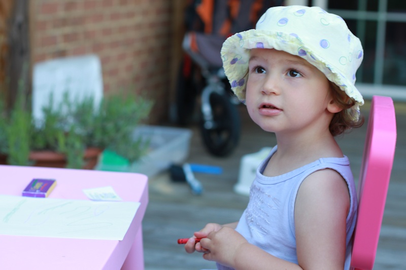 The other days she got a some crayons from Lelya Mariela. We put her table outside and she started drawing.