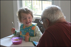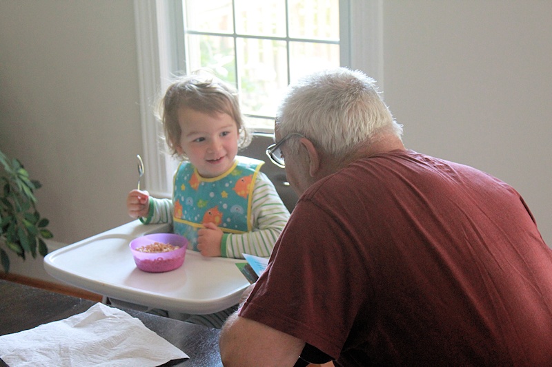 Nora is having a great time with her grandparents.