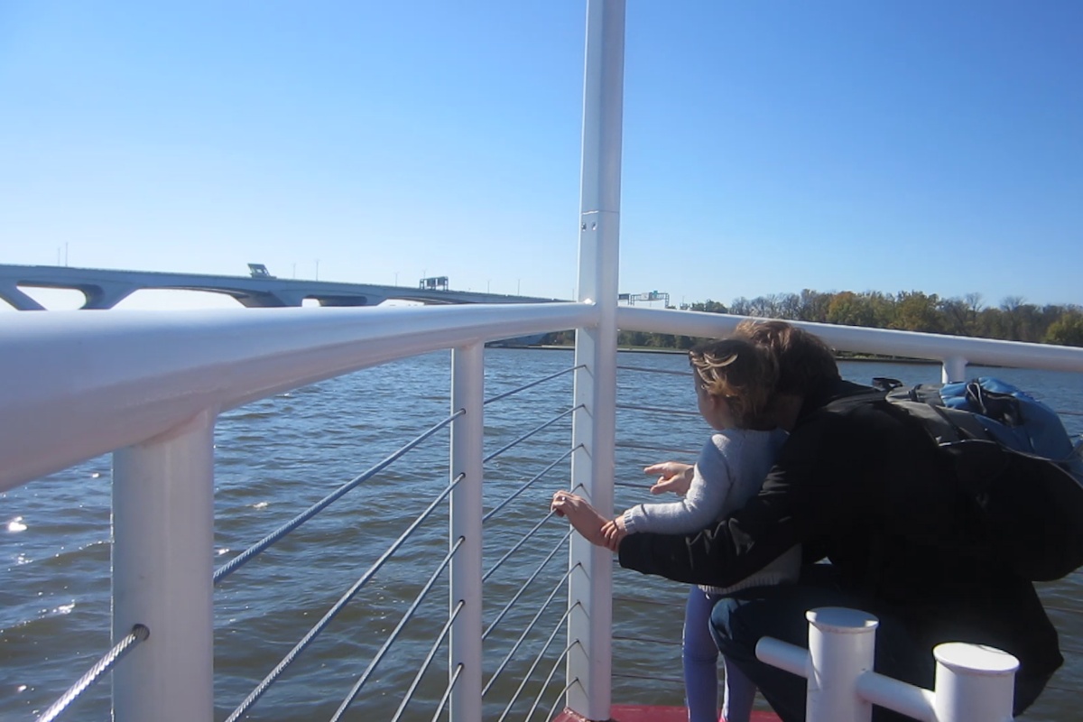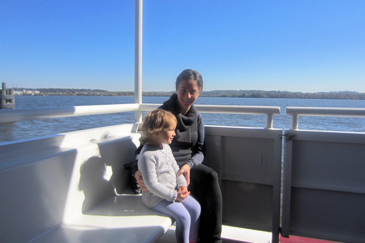 From the beautiful waterfront we took the next boat to National Harbor. Tourist season is over so the boat was almost empty. We had a really good time. It was Nora’s first boat trip. She was quite excited to go under the bridge. She expected it to open for us – that’s the way she saw it in the Netherlands – but this bridge was high enough for the boat.