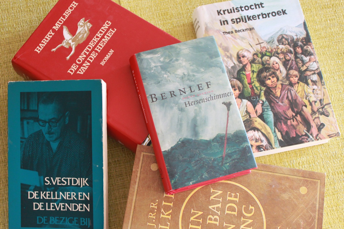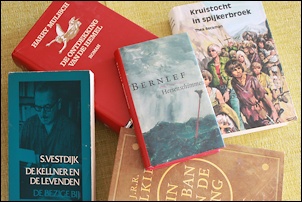 A few weeks ago I installed book shelves in our living room. Finally a place to put our books, and finally an opportunity to get a copy of some of my favorite Dutch books in print.