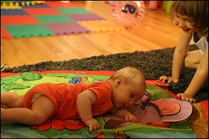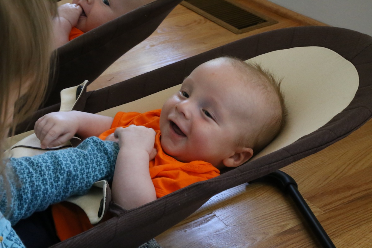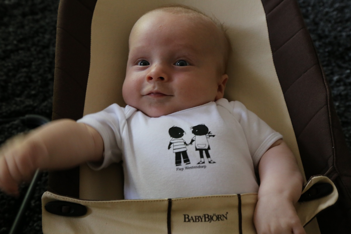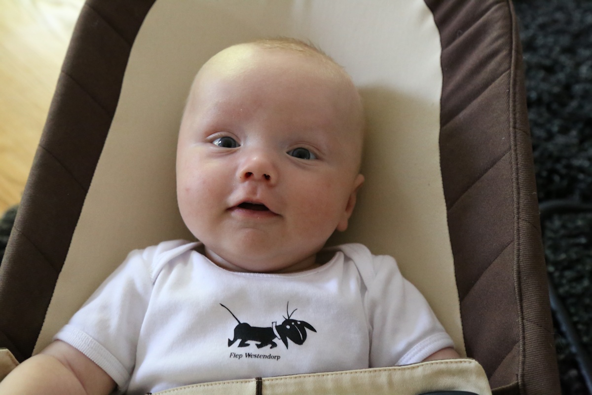 The boys now really enjoy it when someone plays with them. They smile and they coo and it's a lot of fun to interact with them. Nora feels that too. In the beginning she needed some encouragement to talk to them, but yesterday over dinner when Leo was on my lap and I was talking with Sasha, I noticed that Nora was talking to Leo.