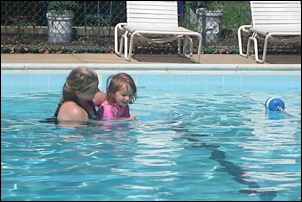 Nora started swimming lessons last week. Sasha is taking her four times per week to the YMCA across 13th Street.