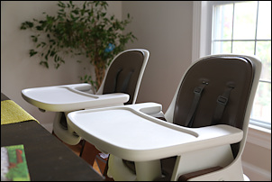 Last weekend we brought back Nora's old highchair and Nora and I assembled the second one yesterday. We haven't seen them next to each other yet but they both enjoyed sitting in the highchair -- there's so much more to see and they're now part of the family conversation, especially during dinner.