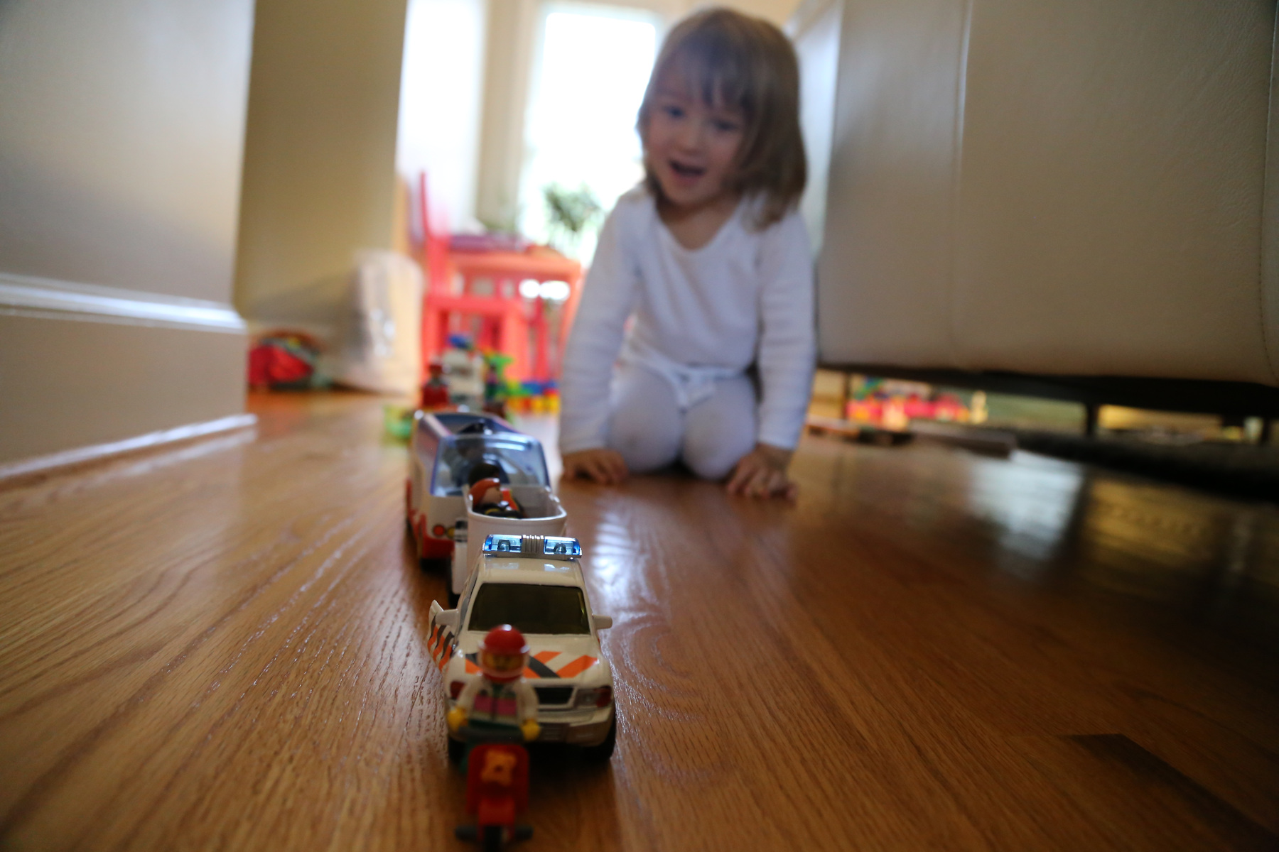 This morning Nora woke up at 7.00 am. After I brought her downstairs etc we agreed that she would play and I would go back upstairs, and so we did. She played for at least 45 minutes by herself, making a big convoy of her Lego and Playmobil. One of the boats she made from the Duplo blocks reminded me of the boats I used to make when I was little.