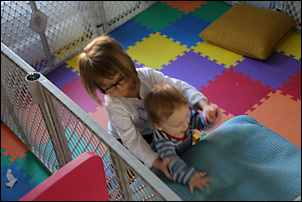 They enjoy spending time in the play pen. When they're in their high chairs for too long they get bored and cranky.
