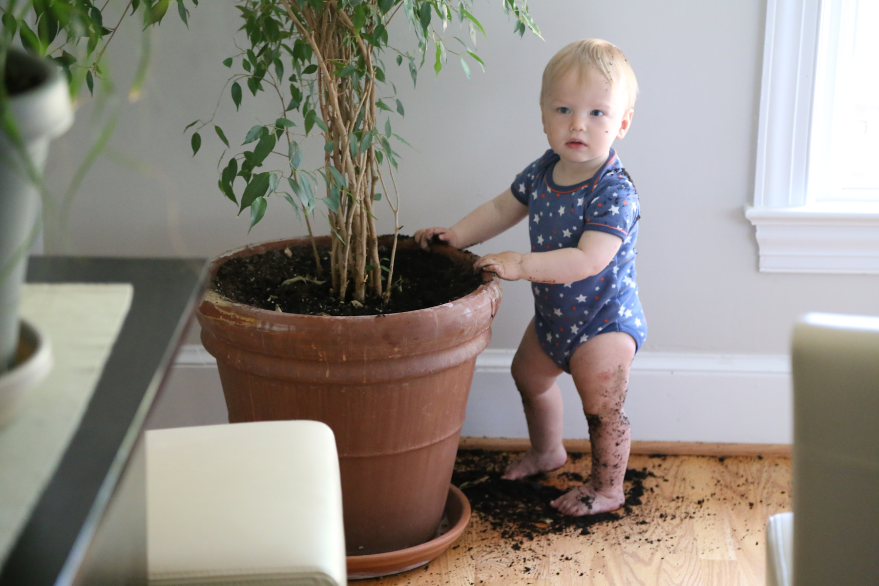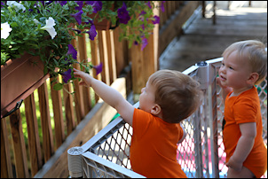 Adrian made his first step! The boys have been cruising for a while now, but while Sasha was in the playpen Adrian made a quick, independent step.