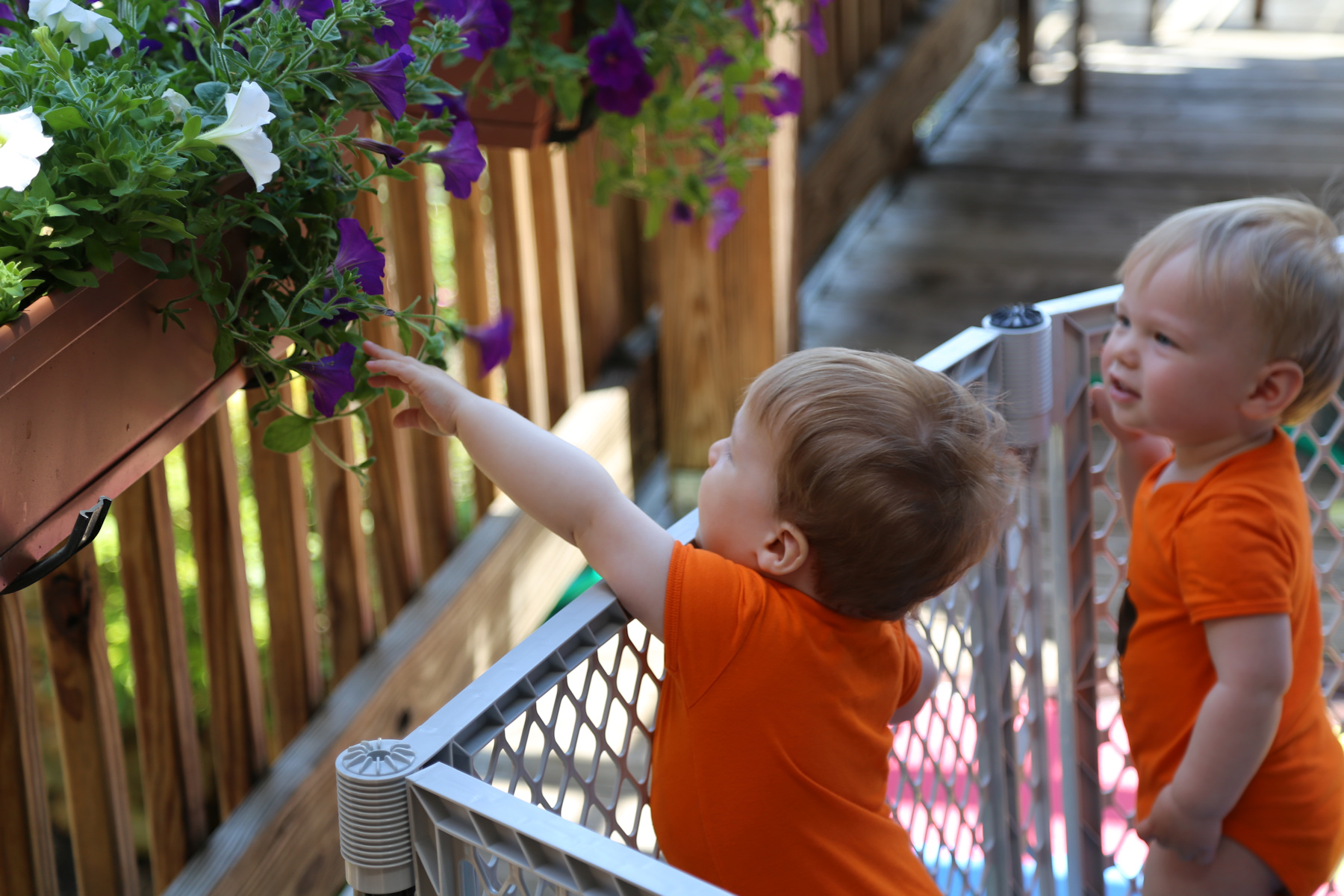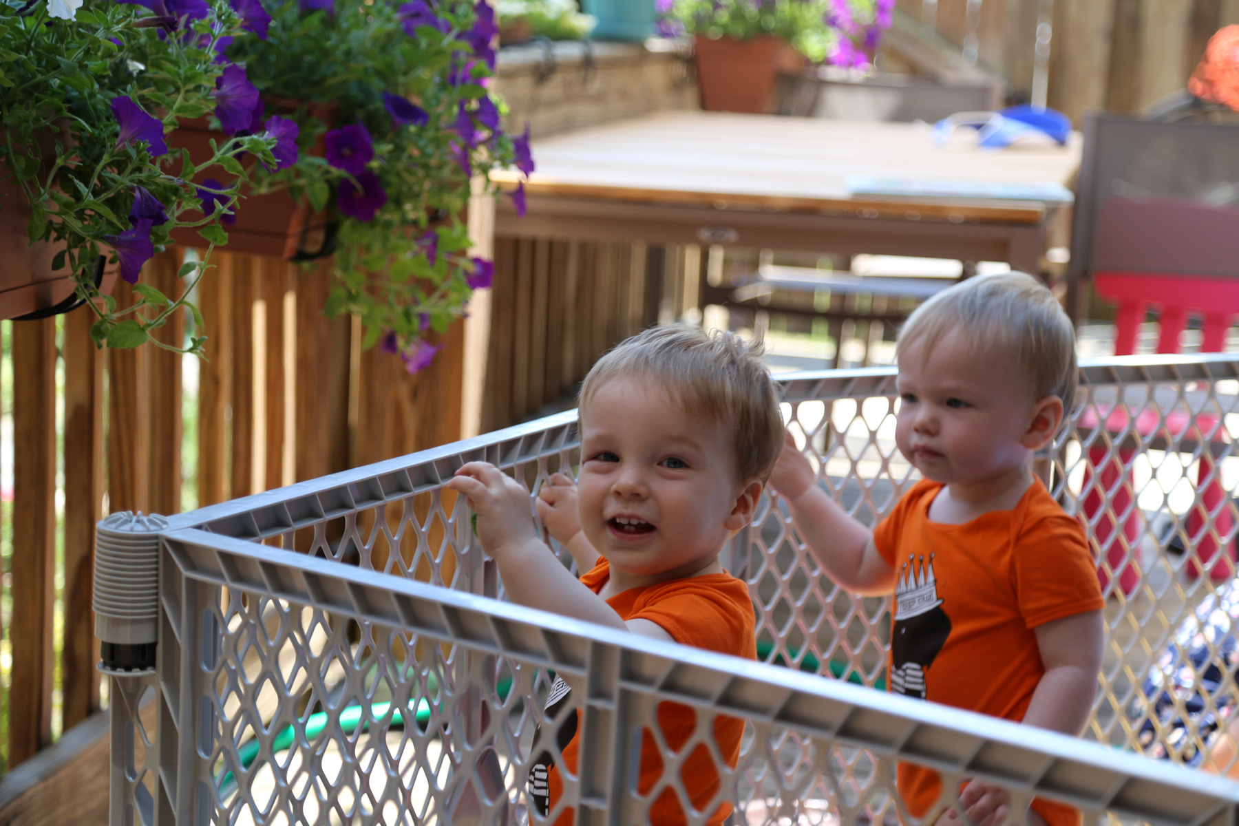 Yesterday we spent the whole day outside, which was great but hot. We put the playpen on the deck as well as the inflatable pool for Nora.