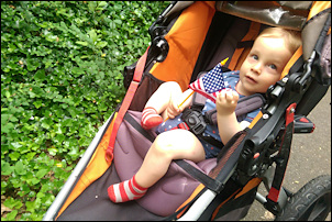 Leo didn't agree with our plan for him (i.e., taking a nap) so I took him with my on my run. That was a lot of fun, and I greatly enjoyed it. He did too. We chatted and he pointed out things (lots of cars, the occasional dog).