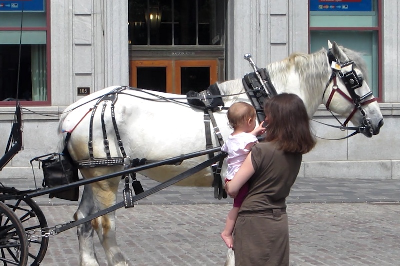 Nora was thrilled to see the horses downtown. She even touched one of them, after some encouragement, and whenever she would see one she'd shout: "paard!". She also saw boats for the first time, "boot!".