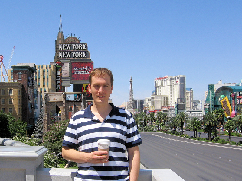 In Las Vegas.We landed in Las Vegas just after 11.00 pm. My first hours in Las Vegas I spent waiting in line. First for a small train from the terminal to the luggage area, then for the luggage. Then I stood in line for 45 minutes to get a cab (reading my magazine) and even at the check-in counter in the hotel there was a 15 minutes line. I arrived in my hotel room around 1.30 am. I quickly tested the equipment that I had brought with me and set it up to run overnight, and went to sleep.
