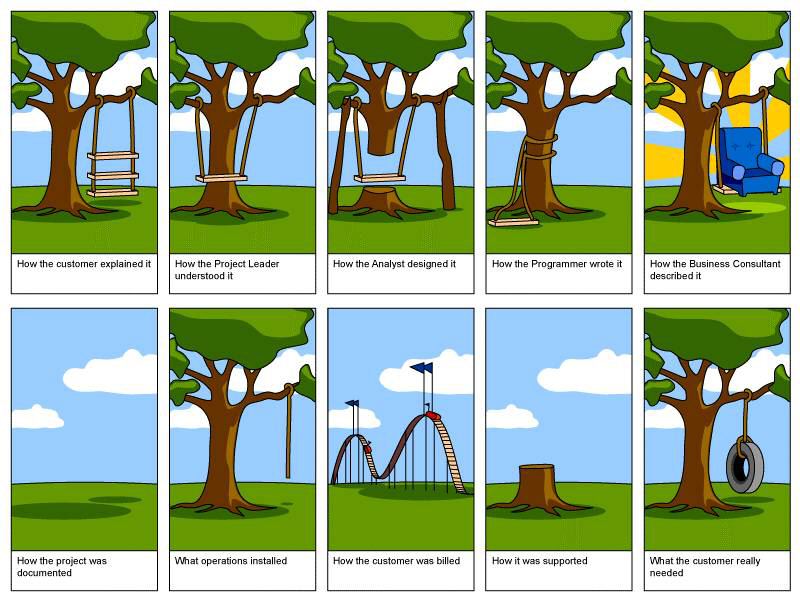 Project.In the daily spam: a cartoon on the various aspects of a software project.