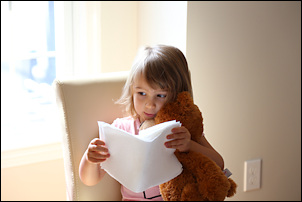 Her "school" is wonderful and she's looking forward to it (though we didn't mention today that she'll be going tomorrow). It's a wonderful and loving environment and she'll have a blast. She'll learn about waiting for her turn, about interacting with other kids, speaking English and she'll have many new friends.