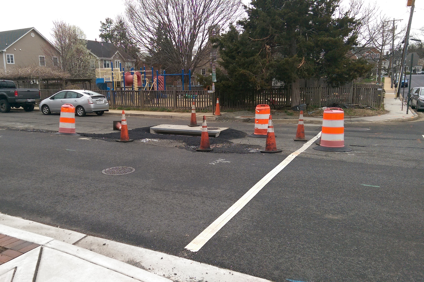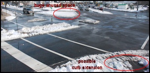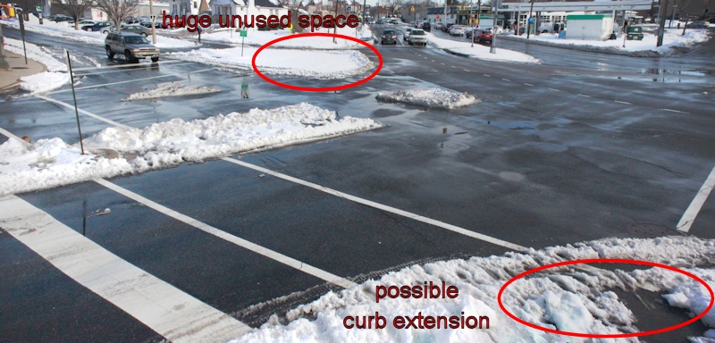 The website Greater Greater Washington.org asked for pictures of so-called "sneckdowns". Those are photo's that show where cars don't use space on an intersection. Space that could be used for pedestrians to make it safer and easier to cross the road.