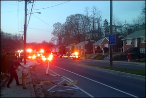 Last Sunday night we were having dinner outside -- the first time this year -- when we saw and heard a firetruck on Kirkwood, down the hill. Then another one, and a third, and even more... I went to take a look.