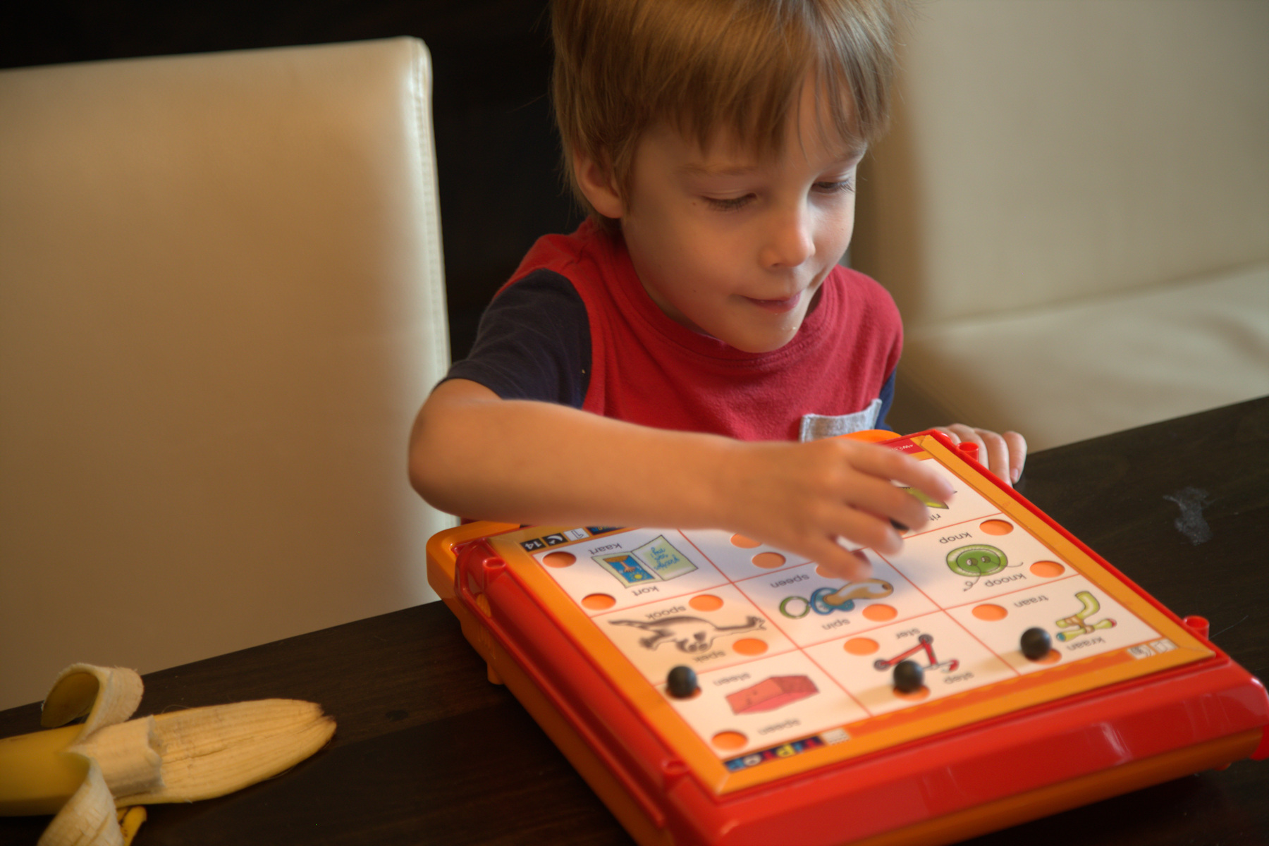 I found a new game for the Veilig Leren Lezen reading course for the boys. It's one of the assignments kids can do when the teacher is busy helping others, with a fun way to self-assess the result.